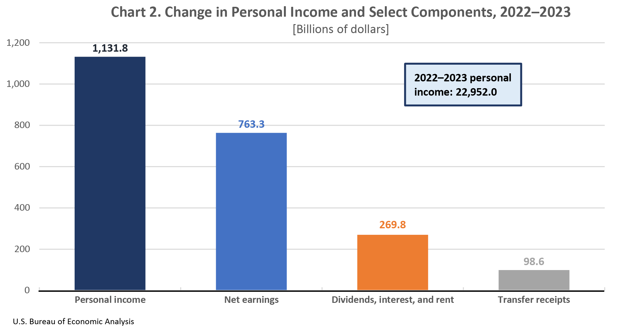 Nationally, increases in earnings, property income, and transfer receipts contributed to the increase in personal income (chart 2).