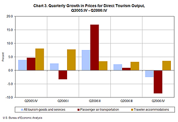 - Prices for tourism goods and services fell 2.5 percent in the fourth quarter of 2006 due to significant declines in the prices of transportation-related goods and services. By comparison, the overall GDP price index rose 1.6 percent in the fourth quarter of 2006.