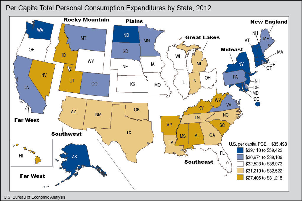 Today, the U.S. Bureau of Economic Analysis released prototype estimates of personal consumption expenditures (PCE) for states for 1997-2012. These new estimates provide insight into household spending patterns across states that can be used together with other regional data to gain a better understanding of regional economies.
