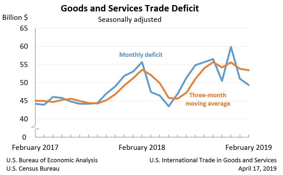Source: U.S. Census Bureau, U.S. Bureau of Economic Analysis; U.S. International Trade in Goods and Services, April 17, 2019
