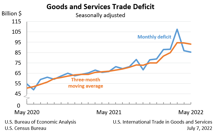 Source: U.S. Census Bureau, U.S. Bureau of Economic Analysis; U.S. International Trade in Goods and Services, July 7, 2022