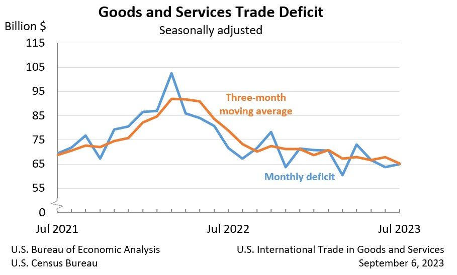 Source: U.S. Census Bureau, U.S. Bureau of Economic Analysis; U.S. International Trade in Goods and Services, September 6, 2023