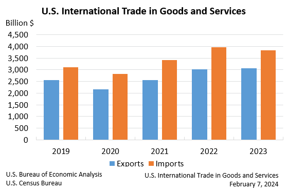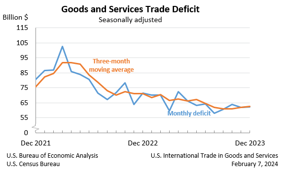 Source: U.S. Census Bureau, U.S. Bureau of Economic Analysis; U.S. International Trade in Goods and Services, February 7, 2024