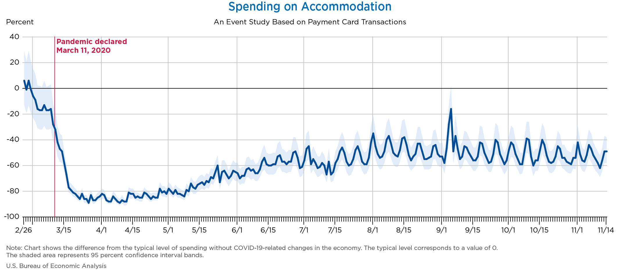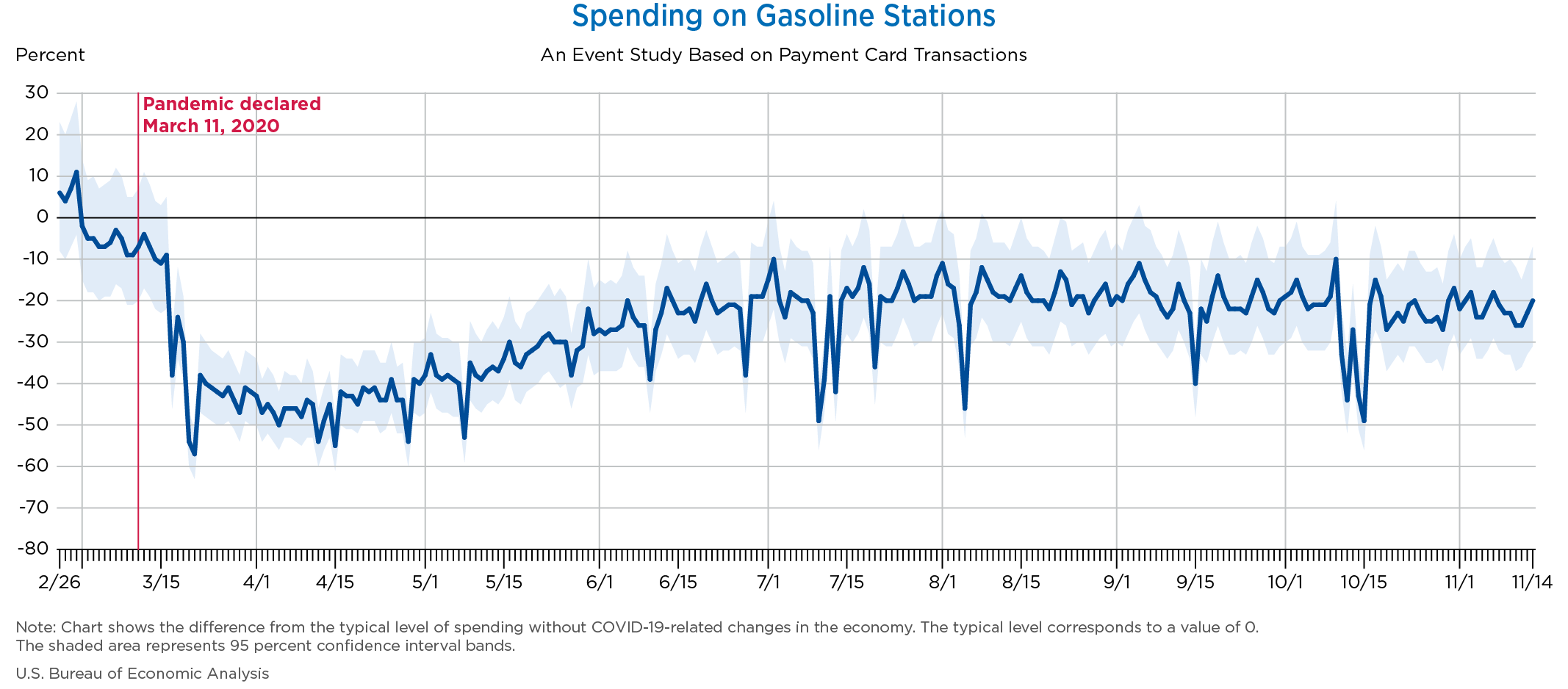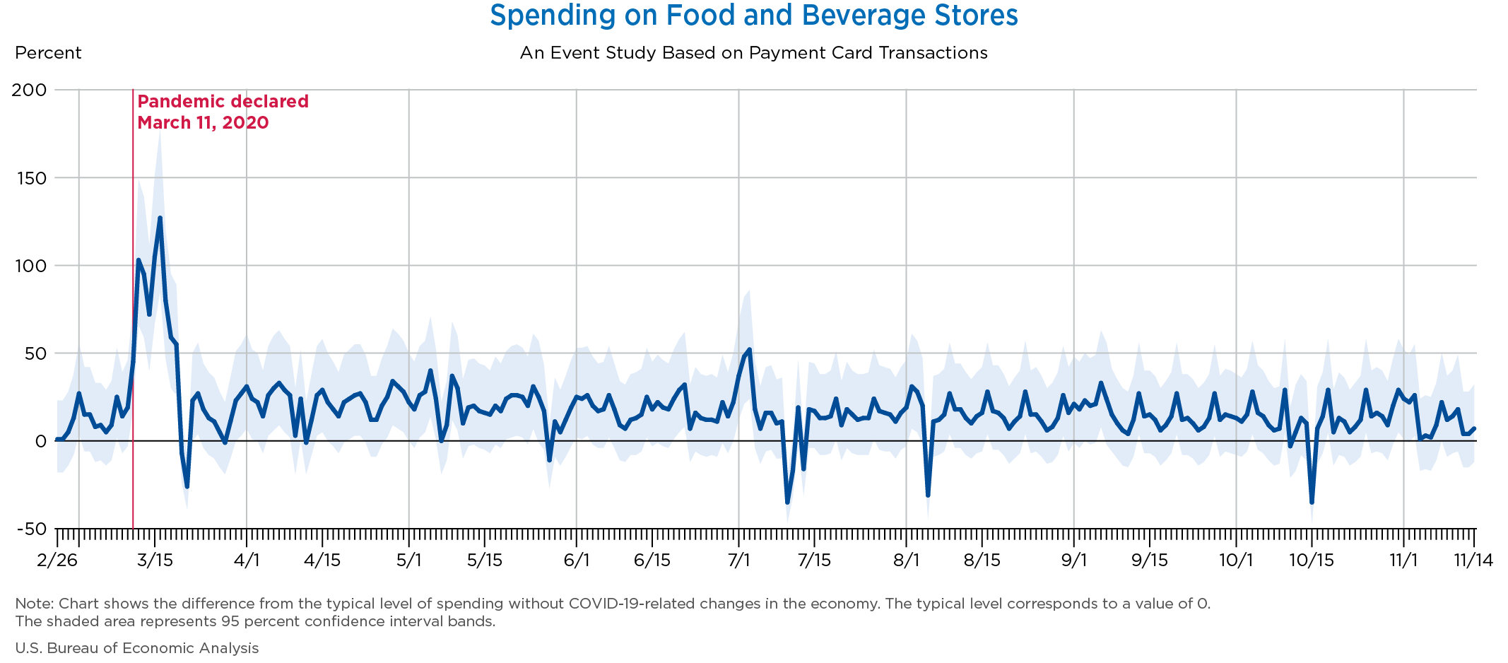 Nov 19, 2020 Daily Spending by Industry Spending on Food Services and Drinking Places Spending on Accommodation Spending at Clothing and Clothing Accessories Stores Spending on Gasoline Stations Spending on Food and Beverages Spending on Ambulatory Health Care Services Spending on Retail and Food Services (Excluding Nonstore Retailers) Data Weekly Event Study of Estimates Using Card Transactions XLSX Monthly Event Study of Estimates Using Card Transactions XLSX